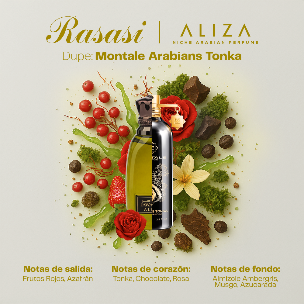 Una fragancia lujosa que se abre con vibrantes notas de frutos rojos y azafrán, se desarrolla en un corazón envolvente de tonka, chocolate y rosa, y culmina en una base exuberante de almizcle, ámbar gris, musgo y notas dulces.